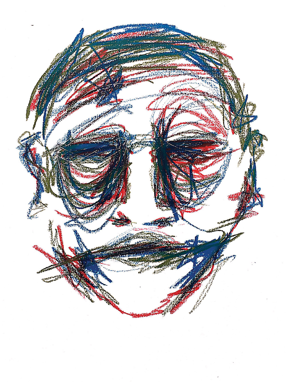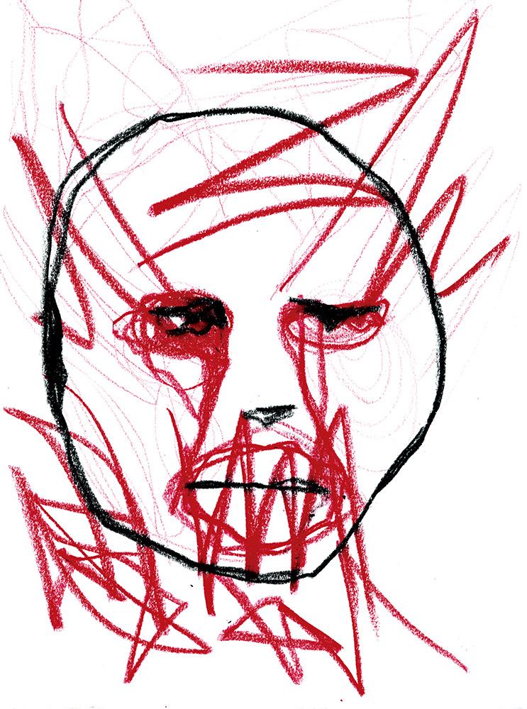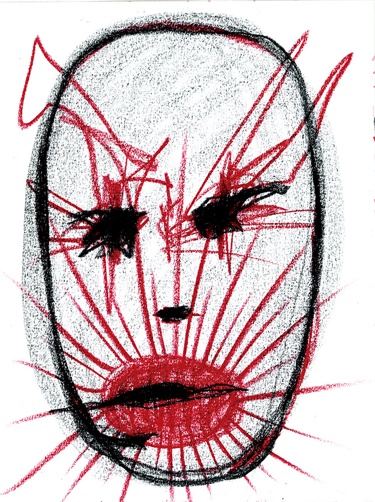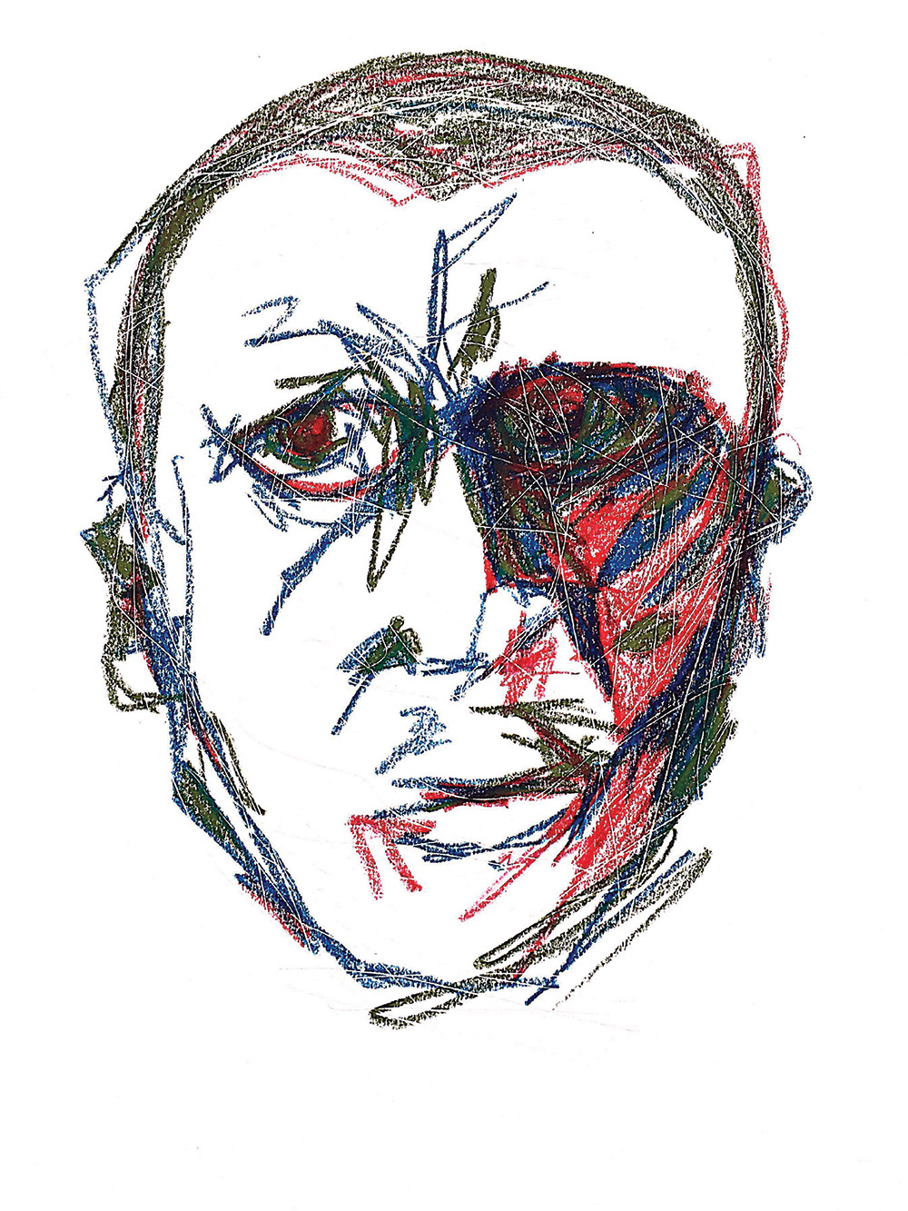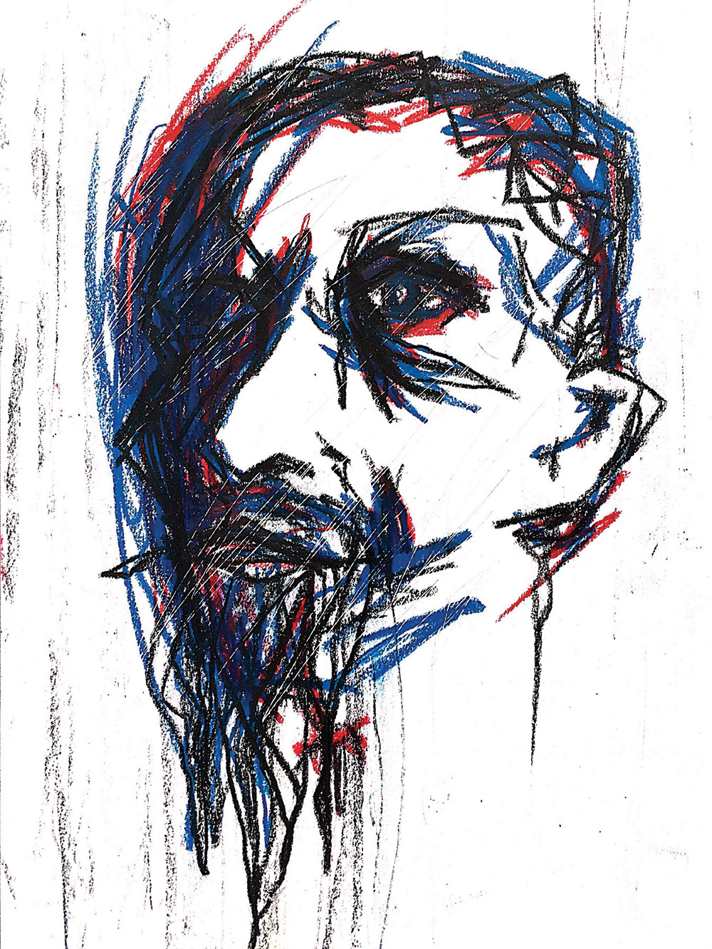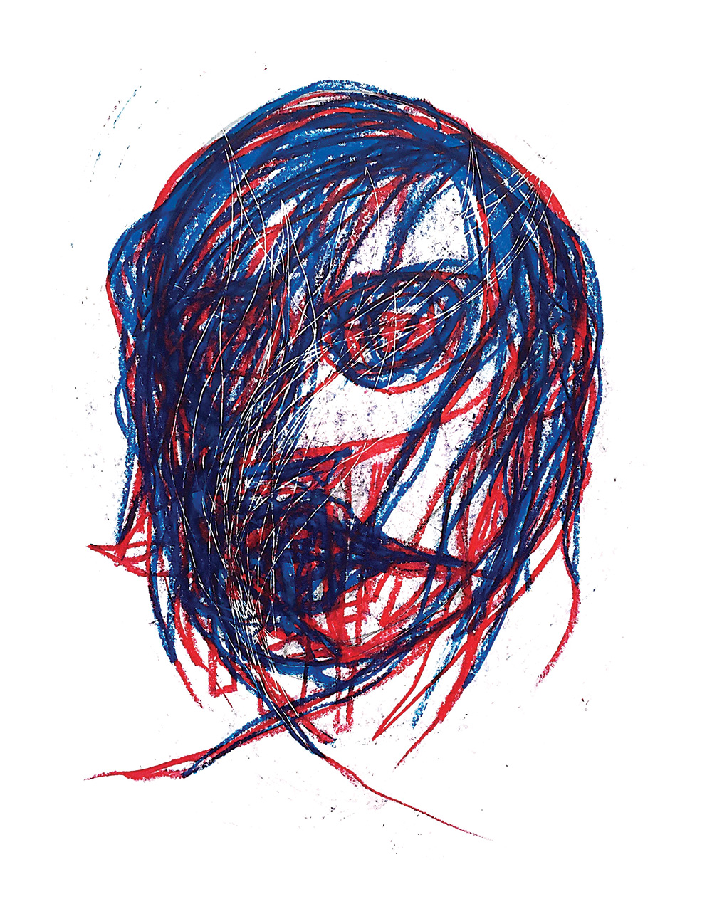 The face is empty because the mind is searching for an answer to the biggest questions. If there is any justice, the expression will turn to one of acceptance, not despair. All works are wax oil pastel and pencil on paper, 12 x 9”.